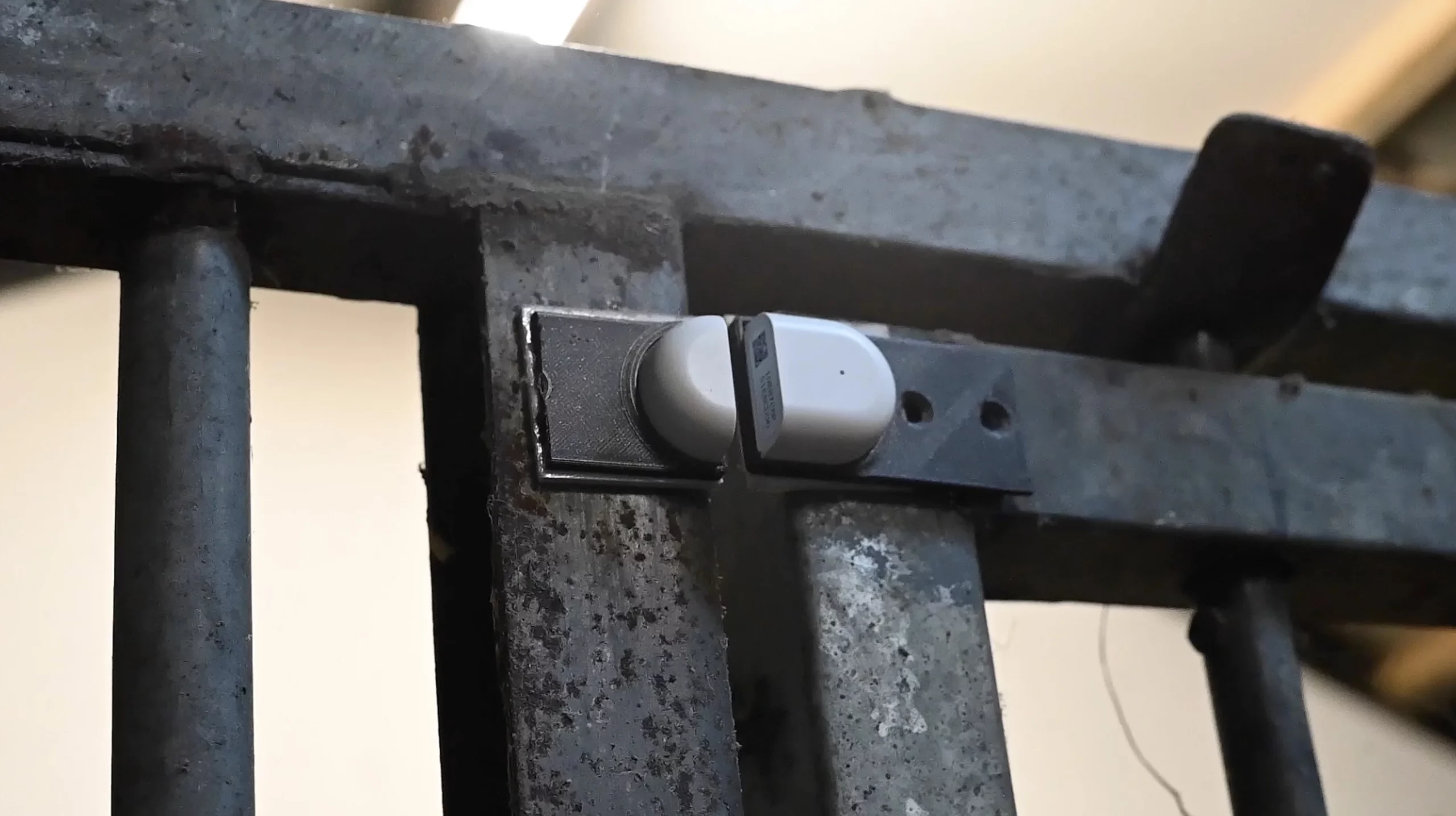 Schließen Sie die Tür und platzieren Sie die beiden Sensorteile direkt gegenüber, wobei ein Teil an der Tür angebracht wird. Wenn sich die Teile nähern oder voneinander entfernen, blinkt kurz ein rotes Licht. Kein Signal? Dann sind die Teile zu weit auseinander (Abstand max. 5 mm).